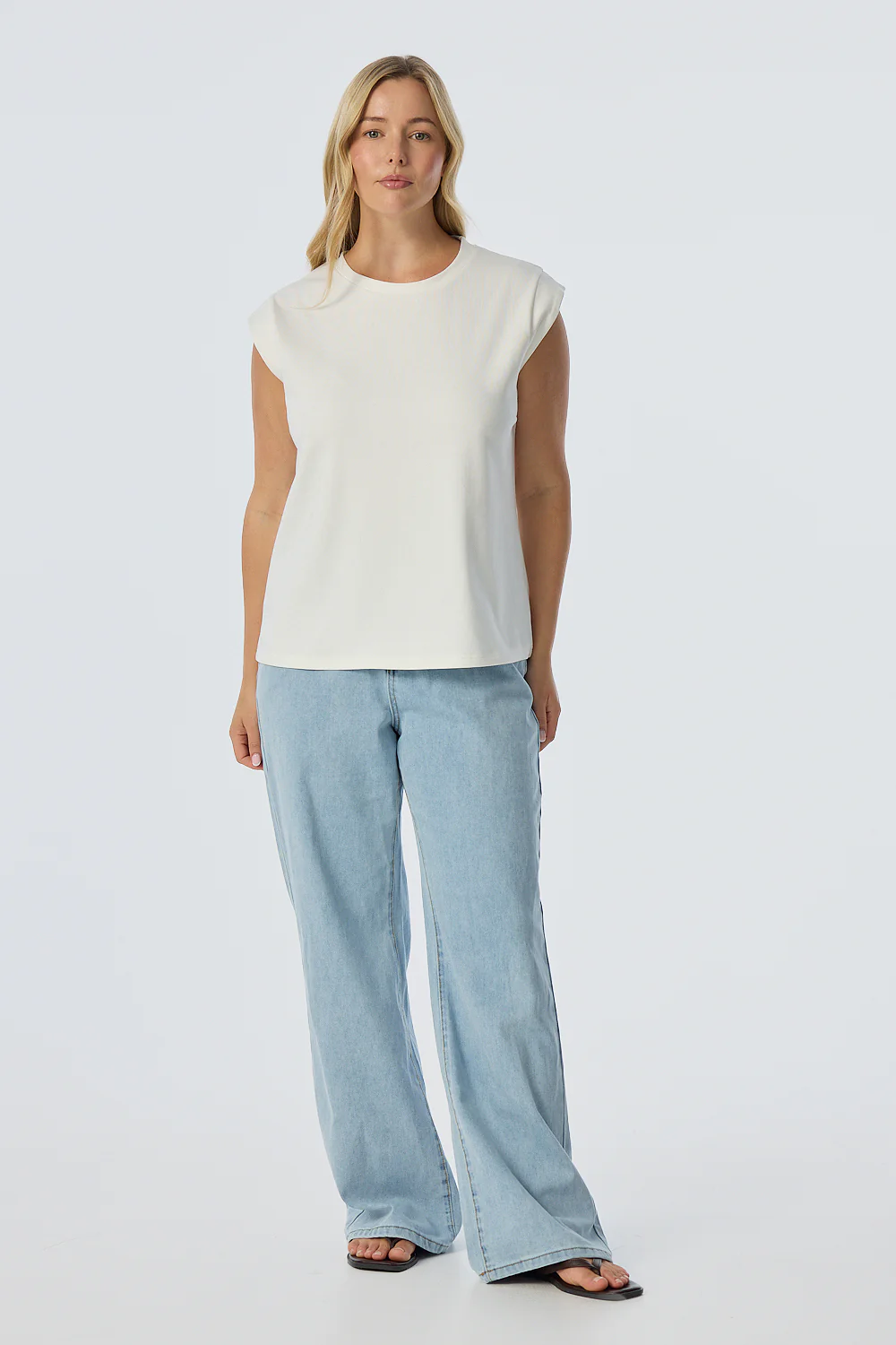 Elevate your casual style with our Cap Sleeve Jersey Tank in White. The wide cut provides more coverage than a classic tank, and its straight fit through the body pairs perfectly with our staple Cargo Pants or signature denim pieces, making it an essential addition to your wardrobe.