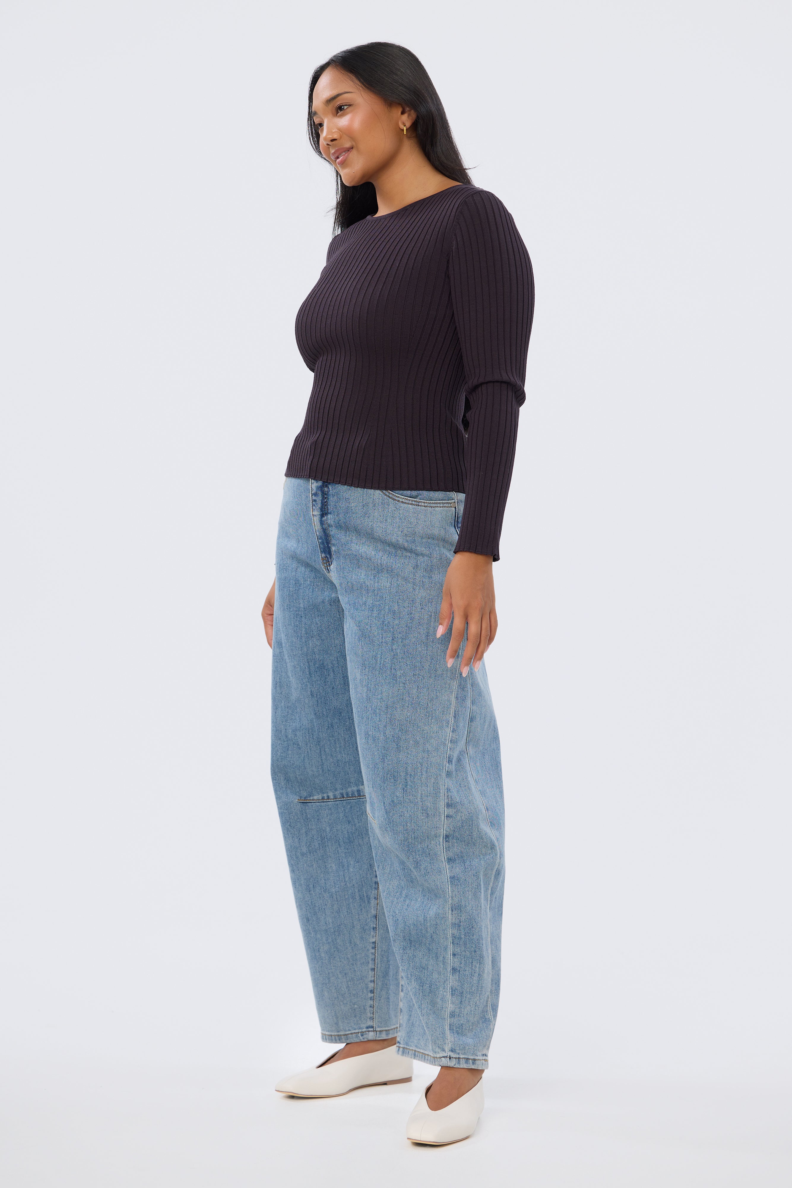 The Long Sleeve Boat Neck Knit Top in Aubergine features a classic boat neckline and full-length sleeves in a mid-weight rib knit. Fitted through the body and mid-length, itās a refined piece perfect for layering or wearing on its own.