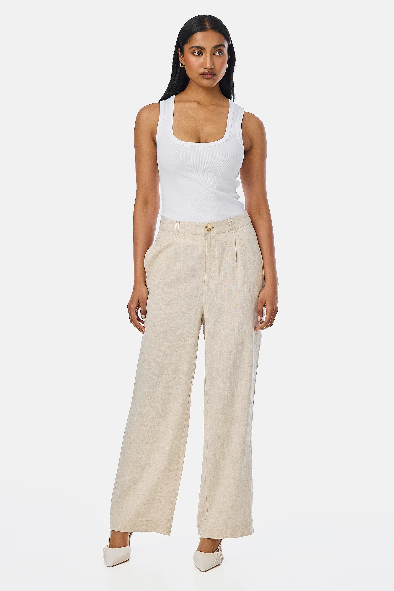The Scoop Neck Ribbed Tank in White is your elevated base layer. Designed for a close fit with a flattering neckline and soft rib texture, wear it with denim, tailored trousers, or tucked into your favourite midi skirt.