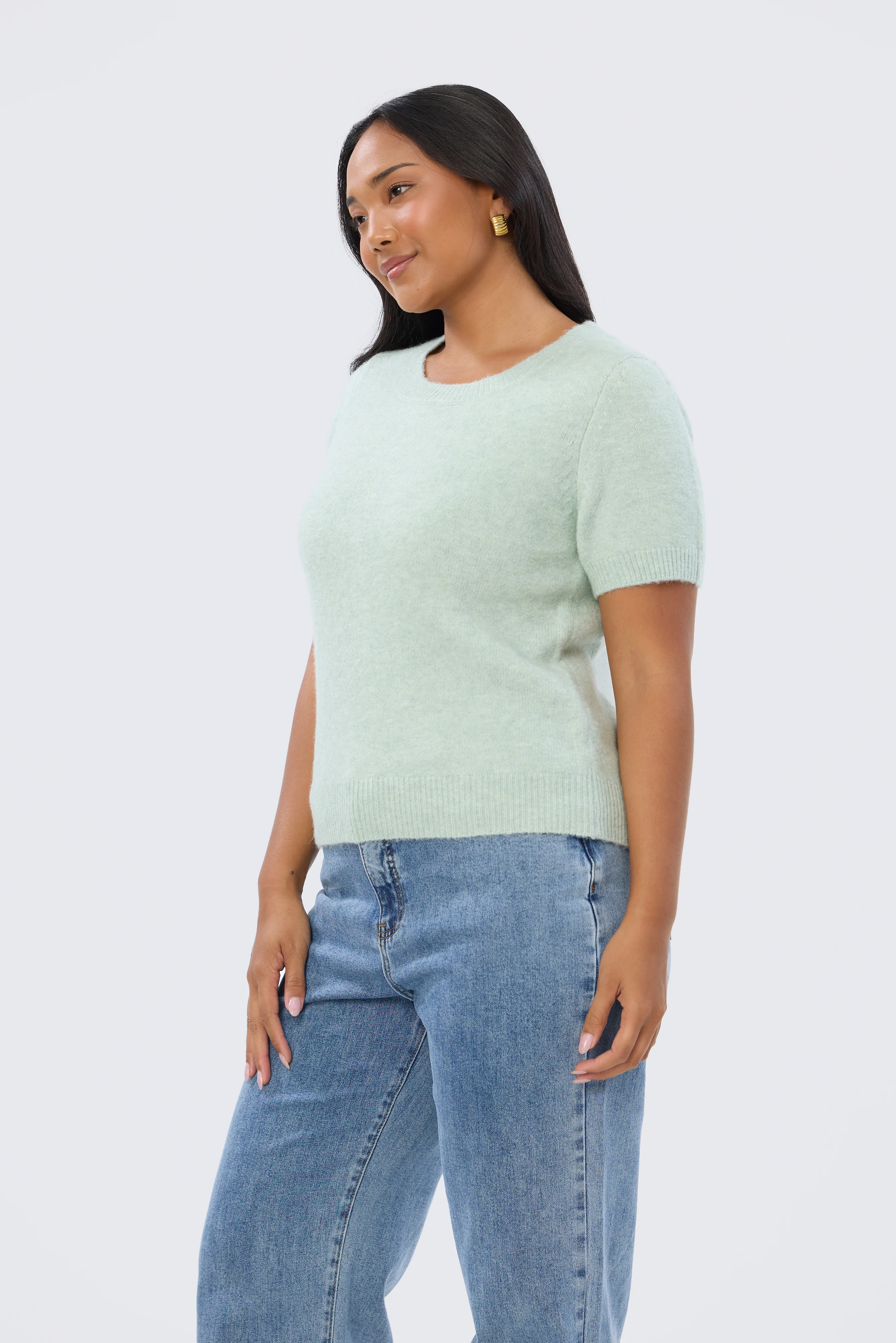 Textured Short Sleeve Knit Top - Mist