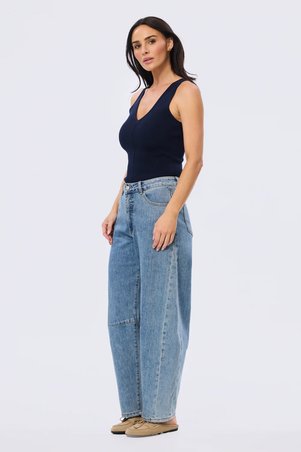 A refined essential designed to streamline your wardrobe. The V-Neck Knit Tank in Navy features a flattering neckline and centre seam detail that adds subtle structure. Crafted in a mid-weight stretch rib knit, it's fitted yet flexible, perfect for layering or wearing solo from day to night.