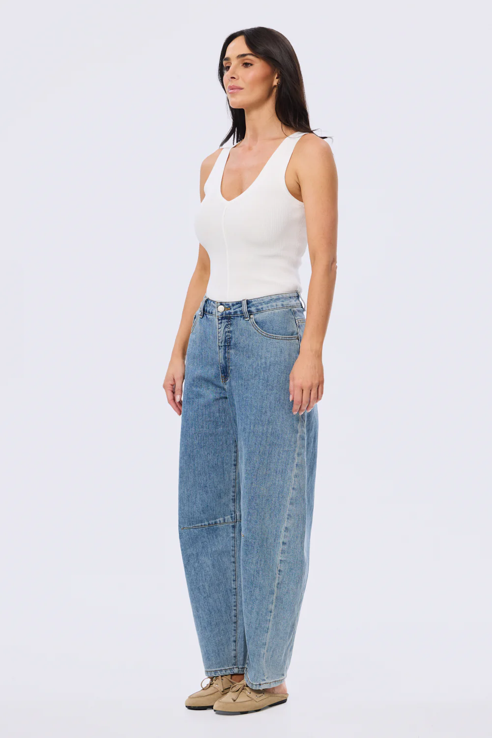 A refined essential designed to streamline your wardrobe. The V-Neck Knit Tank in White features a flattering neckline and centre seam detail that adds subtle structure. Crafted in a mid-weight stretch rib knit, it's fitted yet flexible, perfect for layering or wearing solo from day to night.