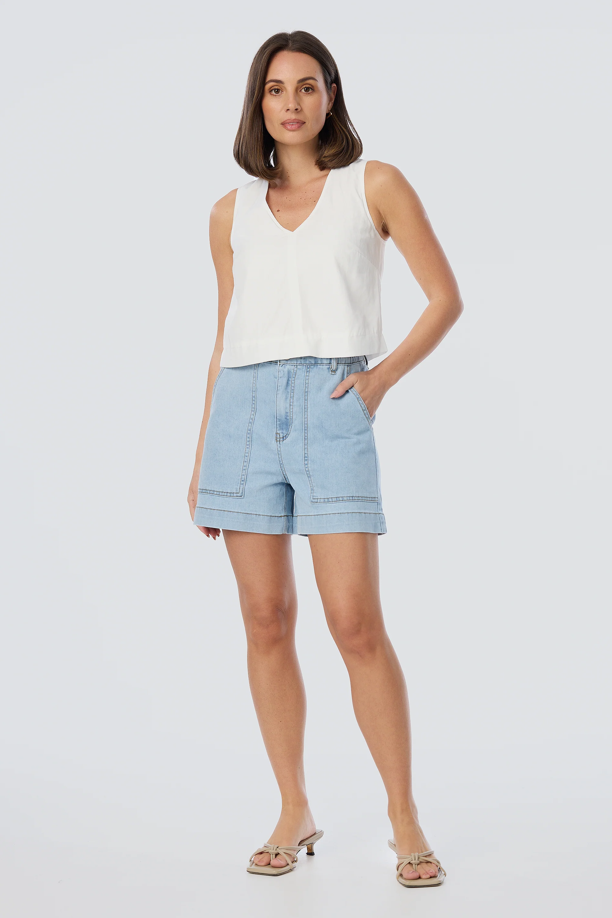 Minimal and modern, the V Neck Topstitched Tank in White is designed with clean lines and a slightly cropped silhouette. Featuring subtle seam detailing and full lining, itās an elevated warm-weather essential.